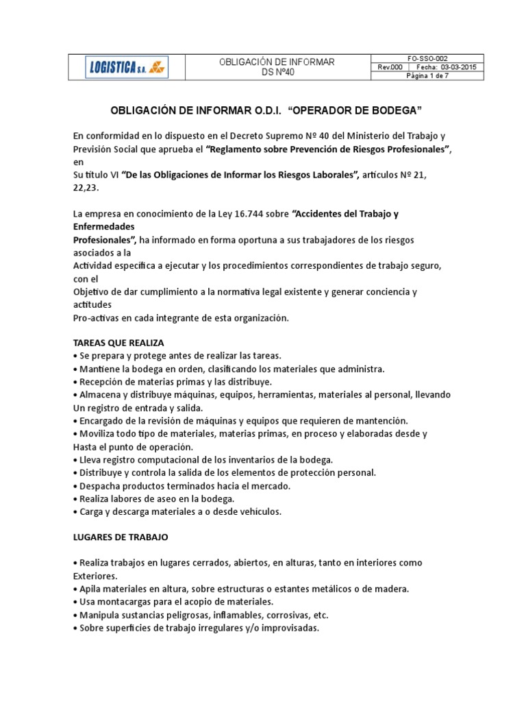 Operario De Bodega / Terrapez Requiere Operario De Bodega En Canas - Contrato a plazo, experiencia mínima de 1 año.. Nuestro cliente de la ciudad de villarrica, del rubro de retail, requiere de operarios para bodega para desencarpe de camiones y reposición de productos. Lea nuestro artículo sobre los códigos de holland. Operario de bodega, guía turístico de bodega. Operario de bodega en bod. Descripción de la plaza crit interim ett selecciona para importante cliente perteneciente al sector vitivinícola.